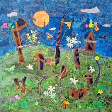 “Dancing in the Moonlight”, Collage, transfer print,
